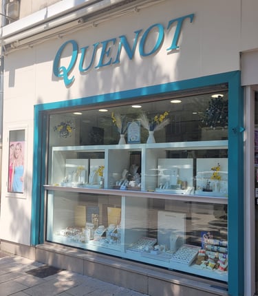 Implantée à Bar-le-Duc, la Bijouterie Quenot vous accompagne depuis de nombreuses années dans vos plus beaux moments. Spécialiste des bijoux et montres de qualité, nous proposons un large choix de créations en or, argent et pierres précieuses, ainsi que des collections modernes et intemporelles.